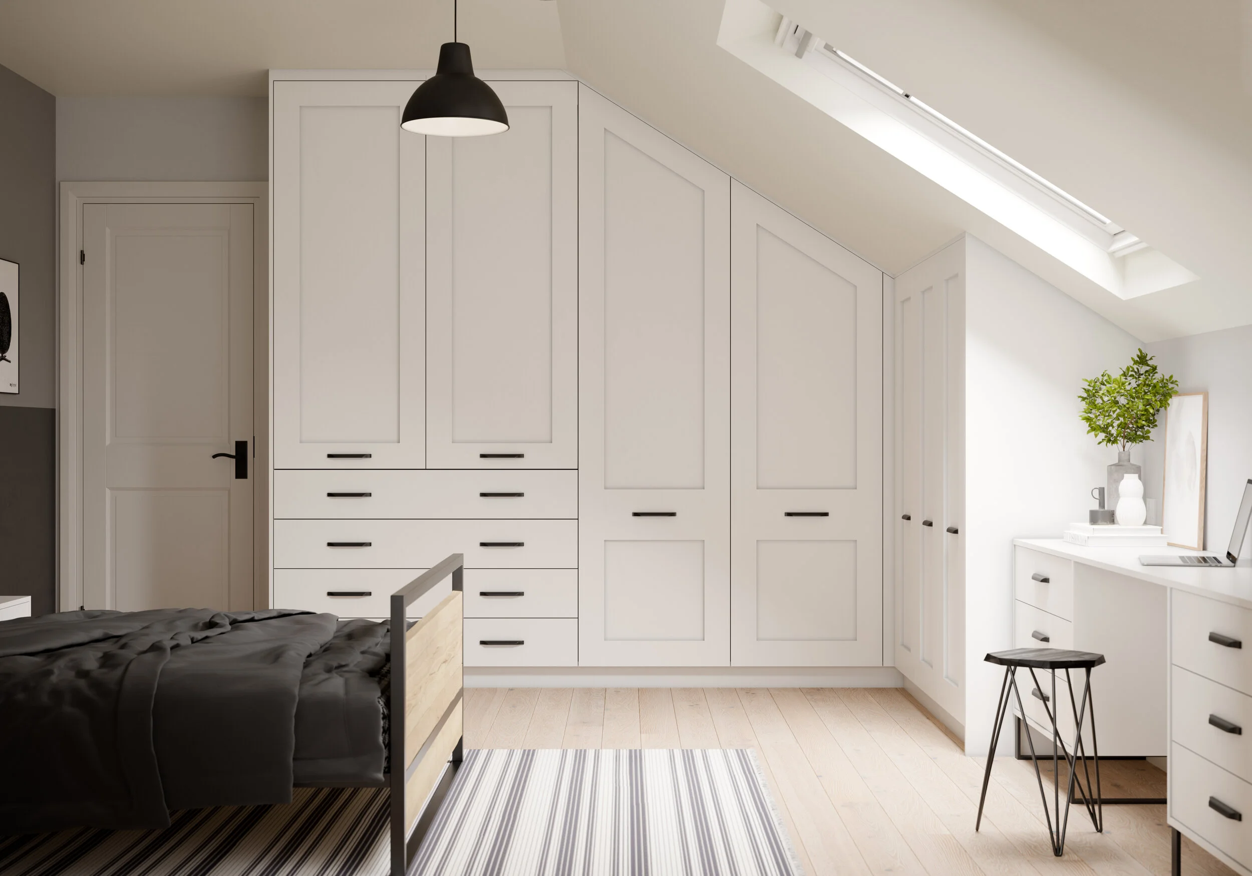 We can design your bedroom in any colour or style. Whether you prefer the more traditional shaker, modern slab, sliding doors, and even angled for a loft room. We can do it all.